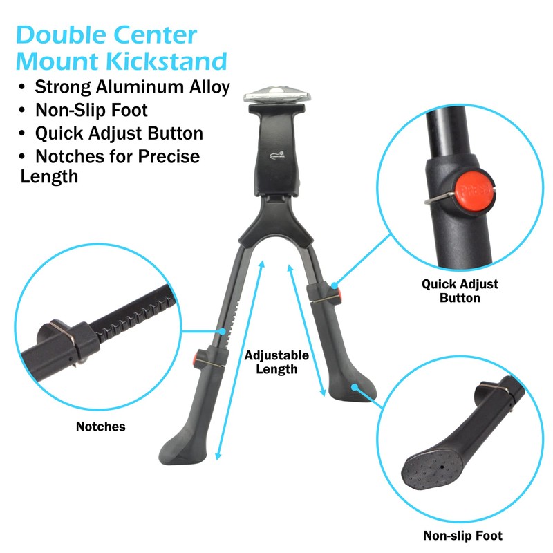 Lumintrail Center Mount Double Leg Kickstand - Adjustable Height Kickstands for 24-29 Inch Adult Bikes - Perfect for Cruiser, Road and Hybrid