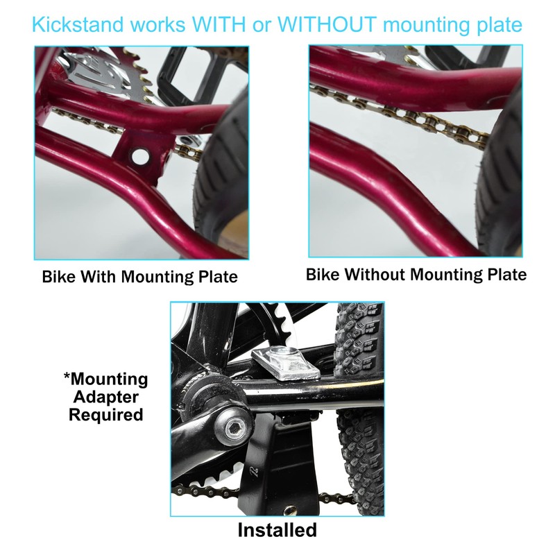 - KICKSTAND HEIGHT: Fully extended the kickstand leg height is 10" with the feet width of 9” Note bikes should have ground clearance of approximately 11.5” to 13”