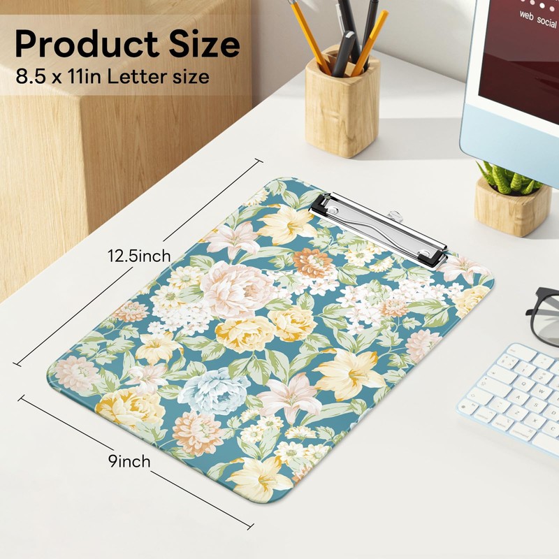 Luminzo Plastic Cute Clipboard, Low-Profile Metal Clip, A4 Letter Size 9 x 12.5 in, 8.5 x 11 Paper Clip Board for Teachers, Nurses, Classroom,Blue Crushed Flower