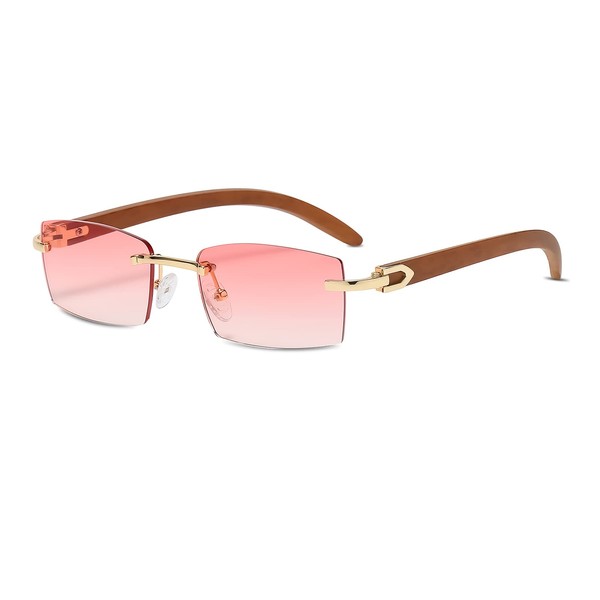LumiSyne Rectangular Rimless Sunglasses Men Women Wooden Ironing Colour Gradient Lenses Ultra Small Frame UV 400 Protection Anti-Glare Retro Square Glasses for Decoration Driving Travel, Gradient pink