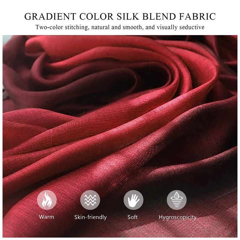LumiSyne Silk Scarf Women's Colour Gradient Cotton Linen Silk Scarf Fashion Elegant Lightweight Soft Neckerchief Sun Cream Stole All Year Round, Burgundy + Crimson