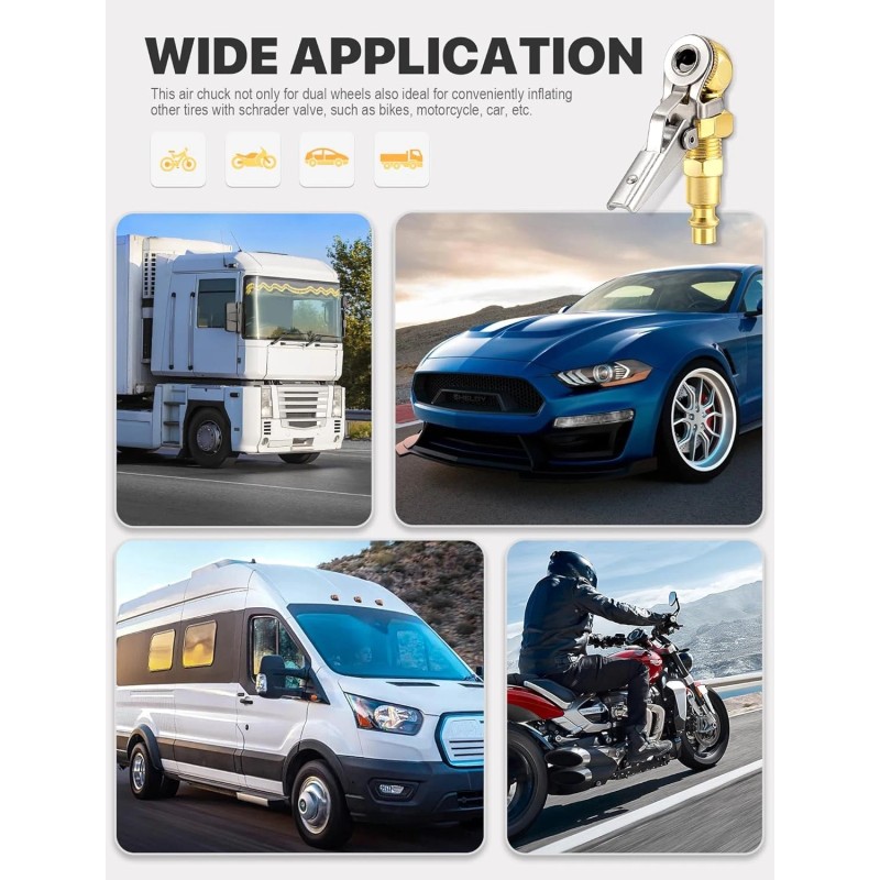 - 【Durable Brass Quick Plugs】: Made of high quality material for greater strength and durability, equipped with two standard brass quick plugs, for easy and swiftly connecting to air lines female quick couple. Making it easier to lock on the valve stem without air leakage, will serve you faithfully for years to come.