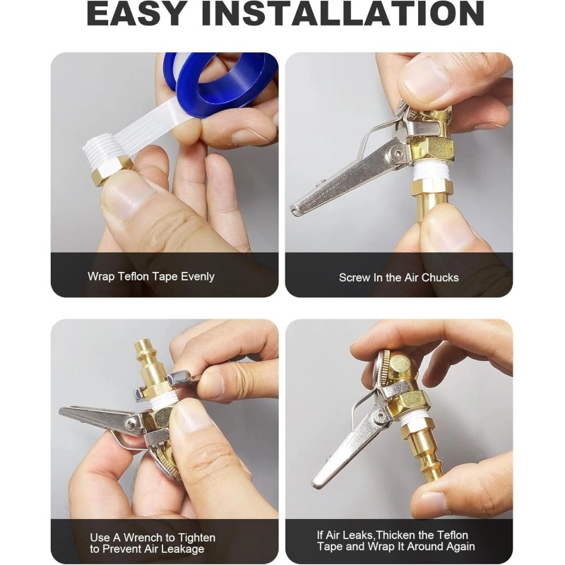 - Included Components: 2 x Closed Ball Air Chuck, 2 x Male Quick Plug, 1 x Teflon Tape
