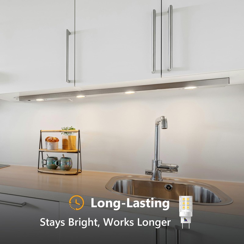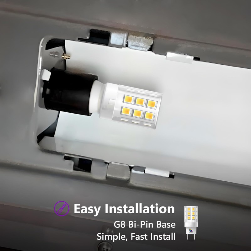 - Seamless G8 Socket Fit: Designed to fit snugly into G8 sockets, replacing halogen bulbs without hassle; integrates perfectly into under cabinet hockey puck lighting.