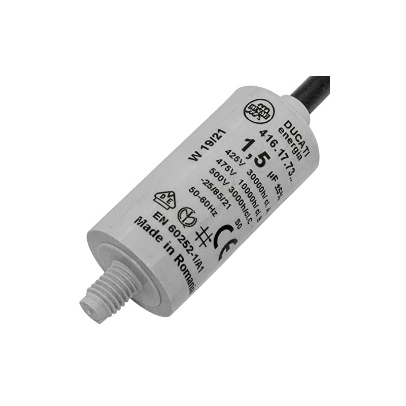 - Power: the motor capacitor has a capacity of 1.5µF (±5%) and can withstand a voltage of up to 450V.