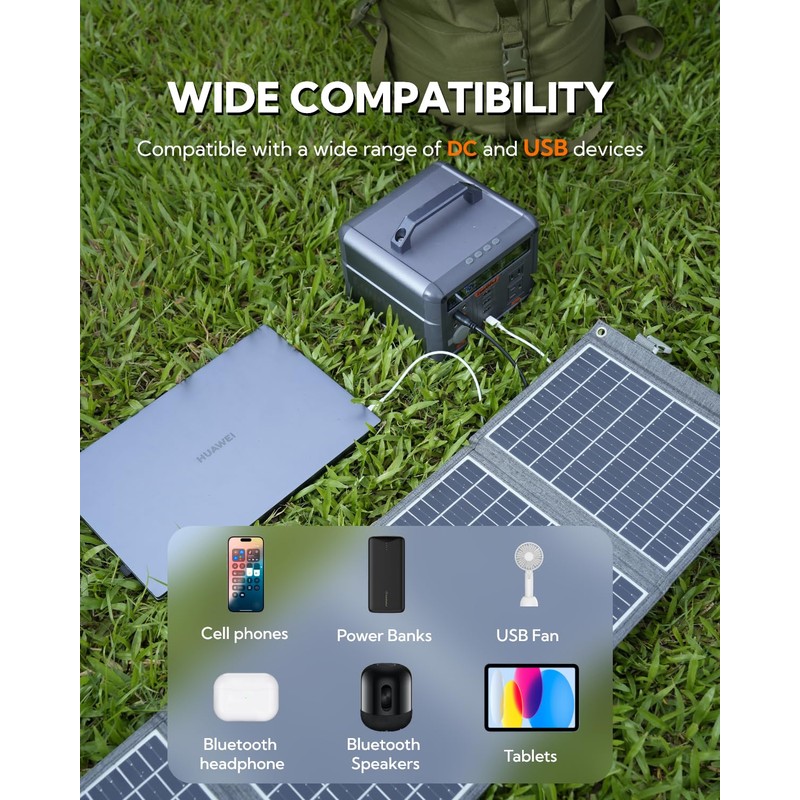- Smart Charging & Device Protection - Built-in intelligent chip allows the 40W folding solar panel to recognize your devices smartly and provide optimal charging speeds. It also offers comprehensive protection against overcurrent, overheating, overvoltage, overload, and short circuits, ensuring worry-free charging for your devices!