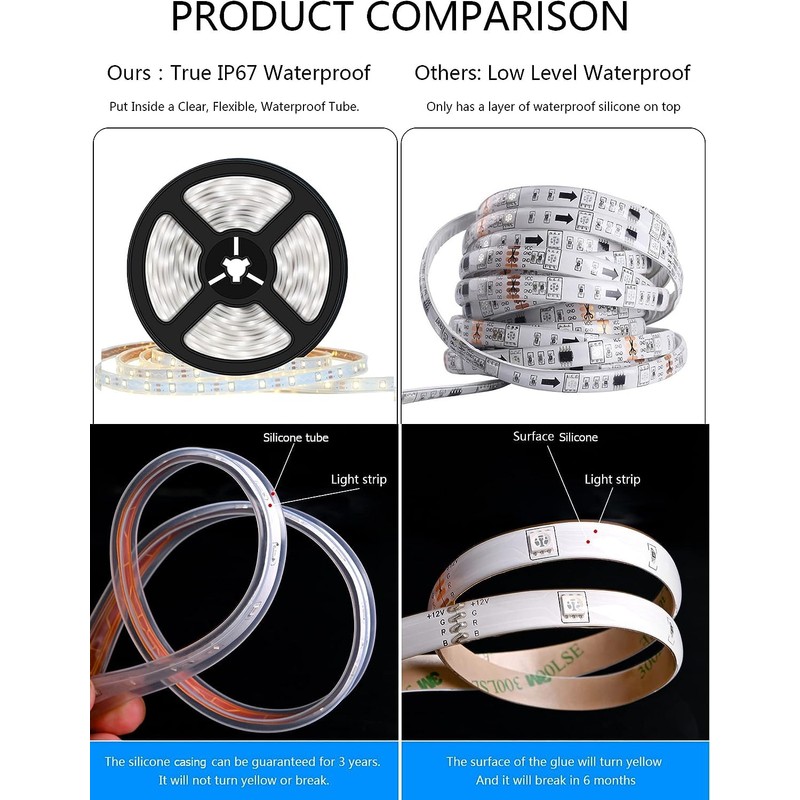 Lumtang Solar LED Strip Lights Outdoor, 16.4ft/5M Solar Powered LED Strip, IP67 Waterproof Rope Lights,Suitable for Outdoor Scenes Such as Gardens and Swimming Pools (5M, Cold White)…