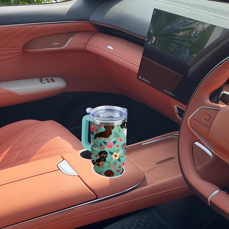 Lumumanber 40 oz Dachshund Tumbler with Handle and Straw, Dog Travel Mug Water Bottle, Stainless Steel Insulated Cup with Lid and Straw, Birthday Christmas Gifts