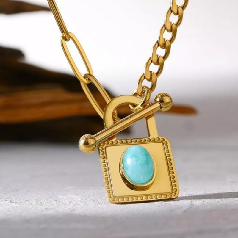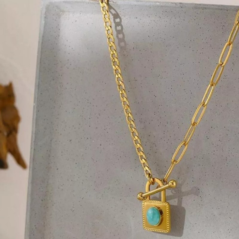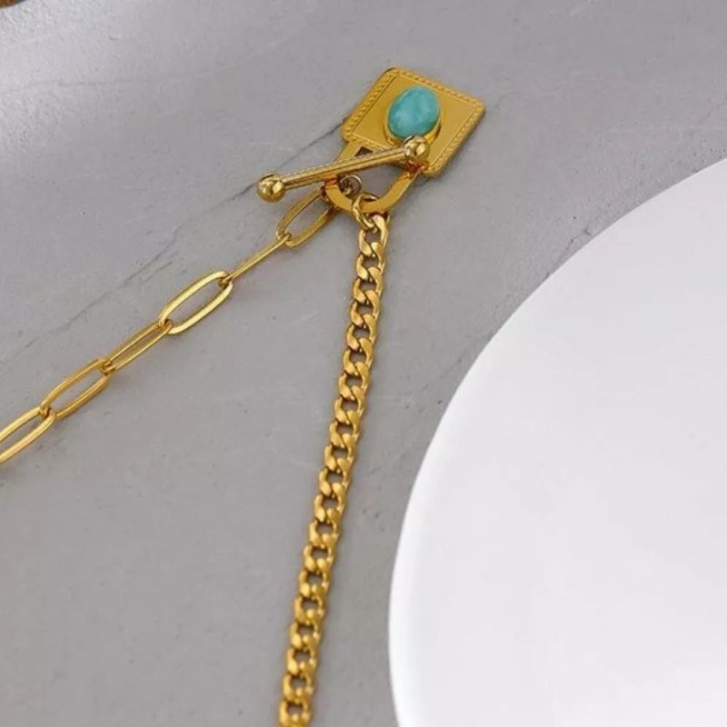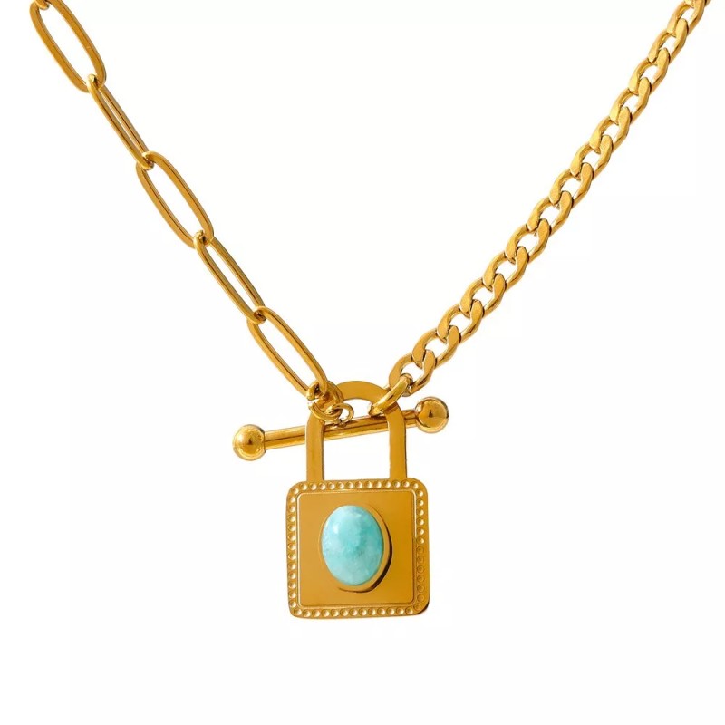 Half Cuban link chain & half oval link chain with front toggle lock pendant clasp.