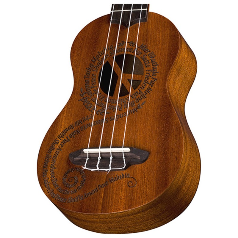 Luna Maluhia Peace Natural Satin Soprano Ukulele Bundle w/Bag, Tuner, and Cloth