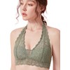 Luna & Sun Soft Sexy Breathable Wirefree Lace Padded Halter Bralette (for A-C Cups) (S, Camo Green)