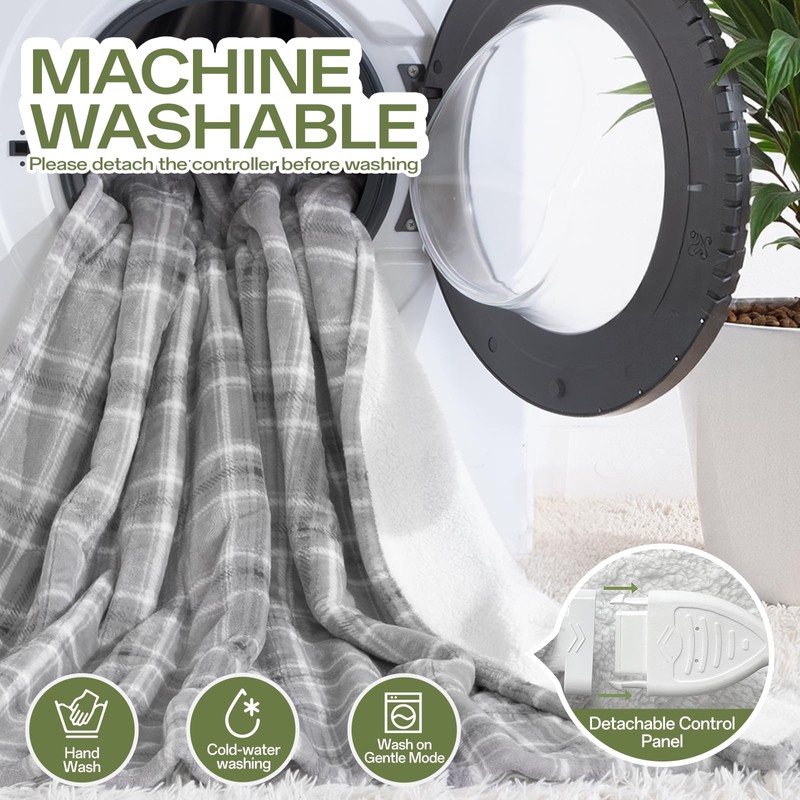 - Machine Washable: This heated blanket is fully machine washable—just remove the controller and let it cool before cleaning. Always follow the user manual for best care and long-lasting use.