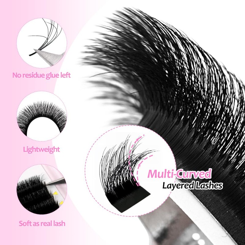 - Lunamoon Easy fan lashes are handmade from high-quality material. So soft and lightweight, similar to real eyelashes that they are the good choice for eyelash extensions