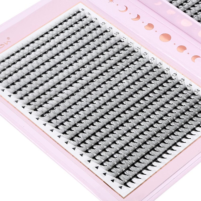 Lunamoon Prefabricated Fan Eyelashes, 14D Ready Fan Eyelashes, 800 Fans Volume, Premade Fans, Ready-to-Use Eyelash Extensions, Volume Eyelashes (14D-0.07-C, 8-15 mm)