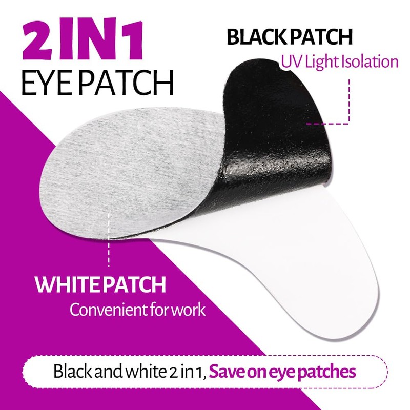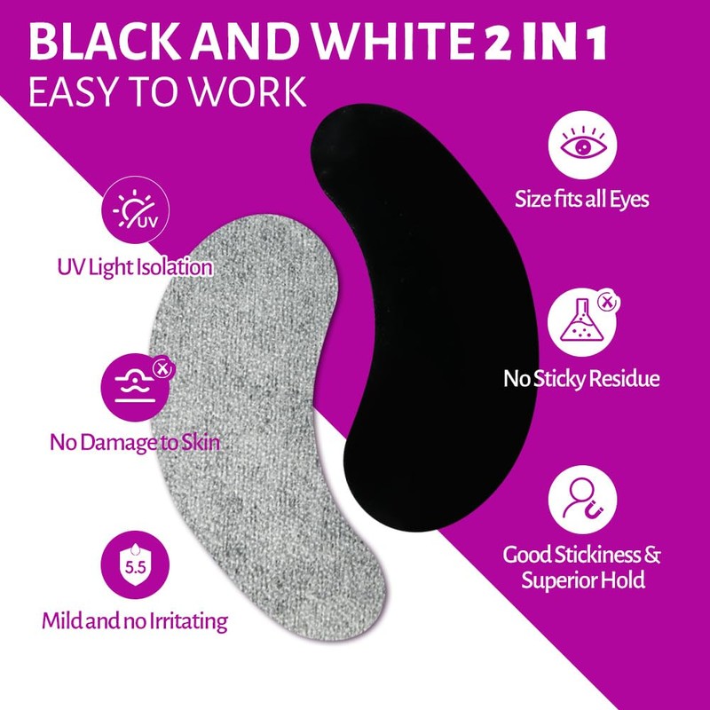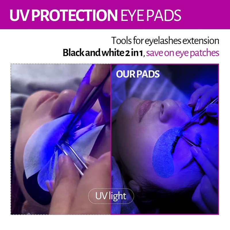 - This double layer UV eye pads for eyelash extension is the latest development from Lunamoon. Black on one side and white on the other. Black eye pads for UV light insulation, white eye pads for work, black and white 2 in 1, save on eye pads