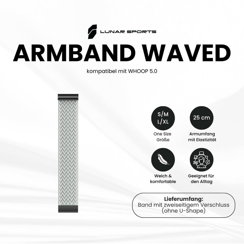 - SUPERIOR COMFORT - The Lunar Sports Wave band impresses with its soft, woven surface that hugs the skin particularly gently and offers a luxurious feel. At 12 grams, only slightly heavier than the basic band, but ideal for those who prefer the highest wearing comfort and a stylish, fine look. Perfect for sports, everyday life and leisure - with an elegant look.