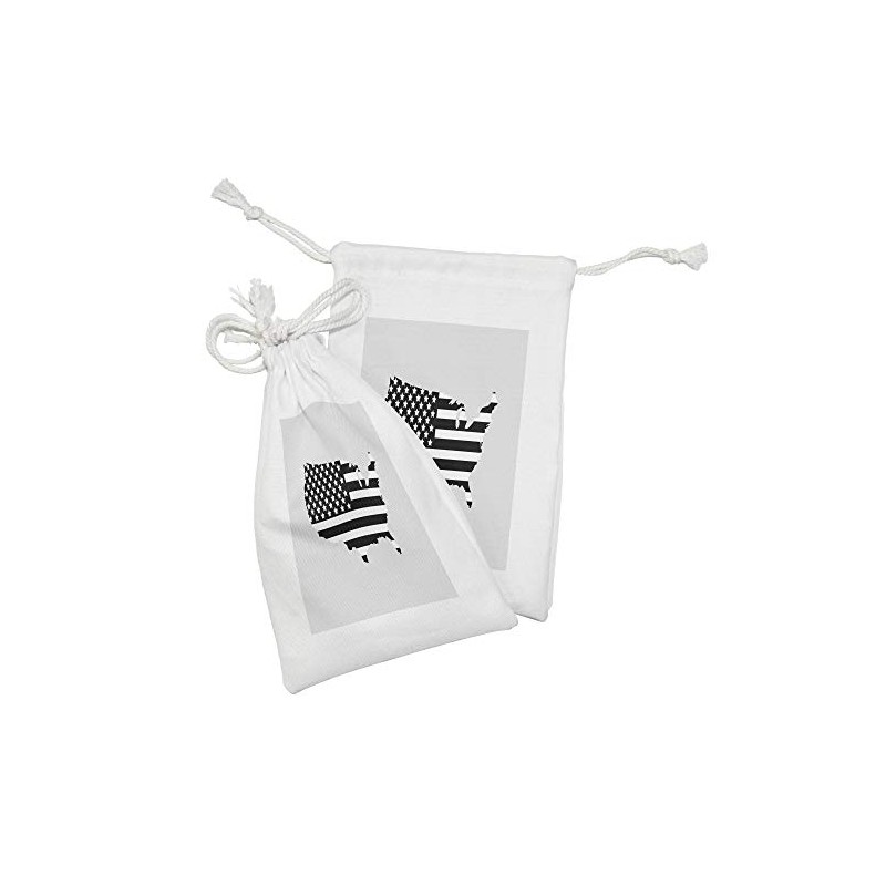 Lunarable American Flag Fabric Pouch Set of 2, United States Political Map with National Flag Ornate Print, Small Drawstring Bag for Toiletries Masks and Favors, 9" x 6", Charcoal Grey White