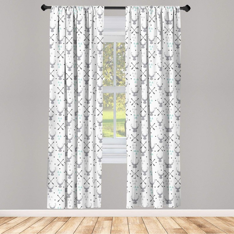 Lunarable Antlers Curtains, Hunting Theme with Scandinavian Design Elements Arrows Triangles Deer, Window Treatments 2 Panel Set for Living Room Bedroom Decor, 56" x 84", Mint Green