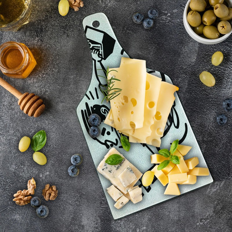- Size - Cutting area: 8" X 7.5", Handle: 6" - Thickness: 1/8 inch. For cutting and serving food.