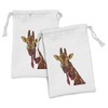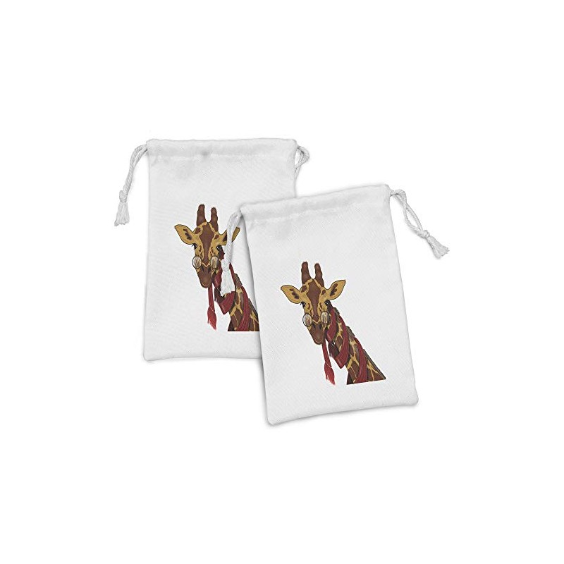 Lunarable Cartoon Fabric Pouch Set of 2, Illustration of Giraffe Wearing Glasses in a Red Scarf Smart Looking Fun Art, Small Drawstring Bag for Toiletries Masks and Favors, 9" x 6", Redwood Marigold