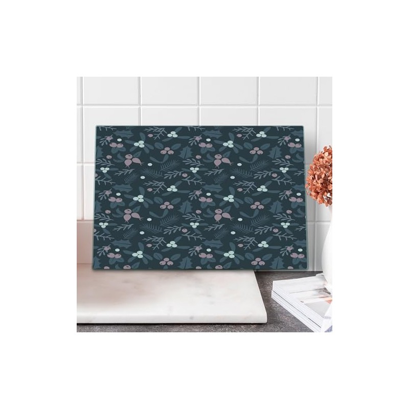 Lunarable Christmas Cutting Board, New Year Themed Abstract Winter Mistletoe Berries Sprigs Leaves Print, Decorative Tempered Glass Cutting and Serving Board, Large Size, Pale Eggplant Lilac