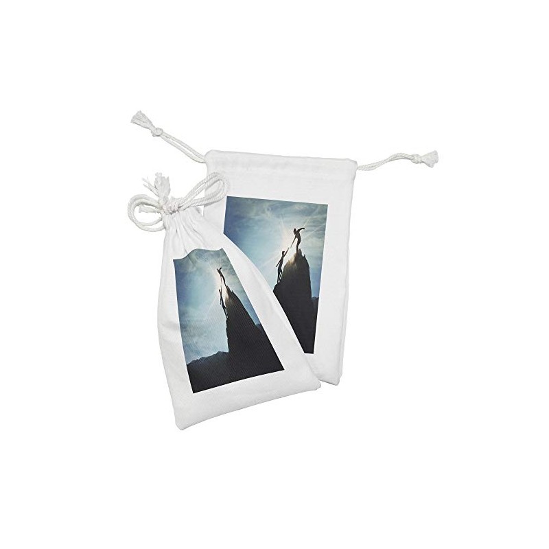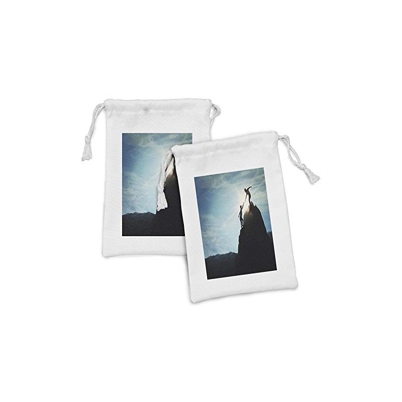 Lunarable Extreme Sports Fabric Pouch Set of 2, Helping Hand Themed Boys on the Hill Illustration Sun Rays in Background, Small Drawstring Bag for Toiletries Masks and Favors, 9" x 6", Blue and Black