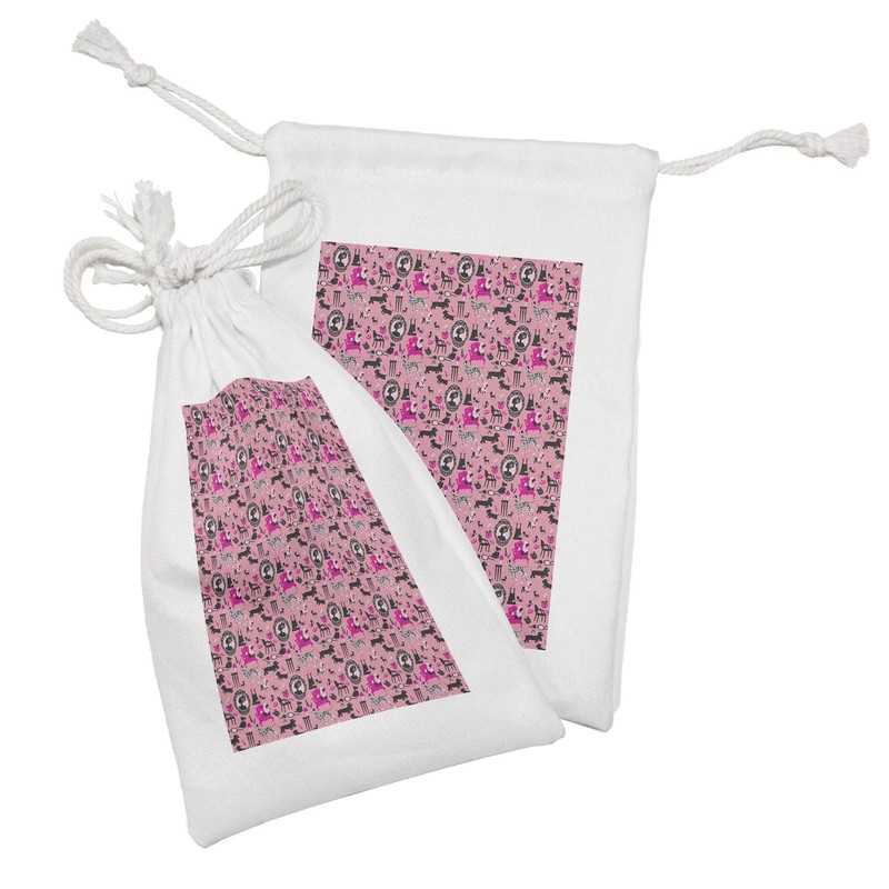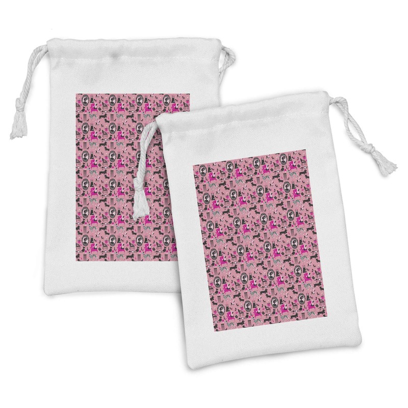 Lunarable Feminine Fabric Pouch Set of 2, Girly Pattern Glamour Accessories Furniture Portrait and Dogs, Small Drawstring Bag for Toiletries Masks and Favors, 9" x 6", Pastel Pink Hot Pink