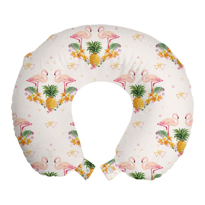 Lunarable Flamingo Travel Pillow Neck Rest, Floral Exotic Summer Birds Pineap...