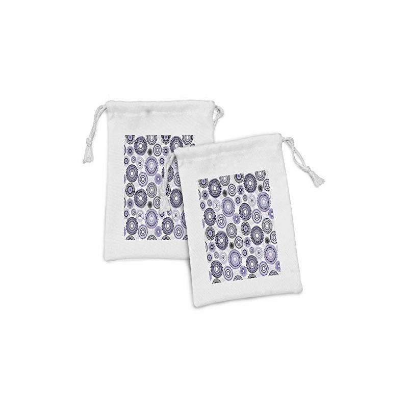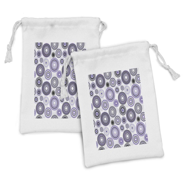 Lunarable Floral Fabric Pouch Set of 2, Abstract Medallion Pattern Round Shape with Leaves Balls Floral Flowers, Small Drawstring Bag for Toiletries Masks and Favors, 9" x 6", Purple White Black