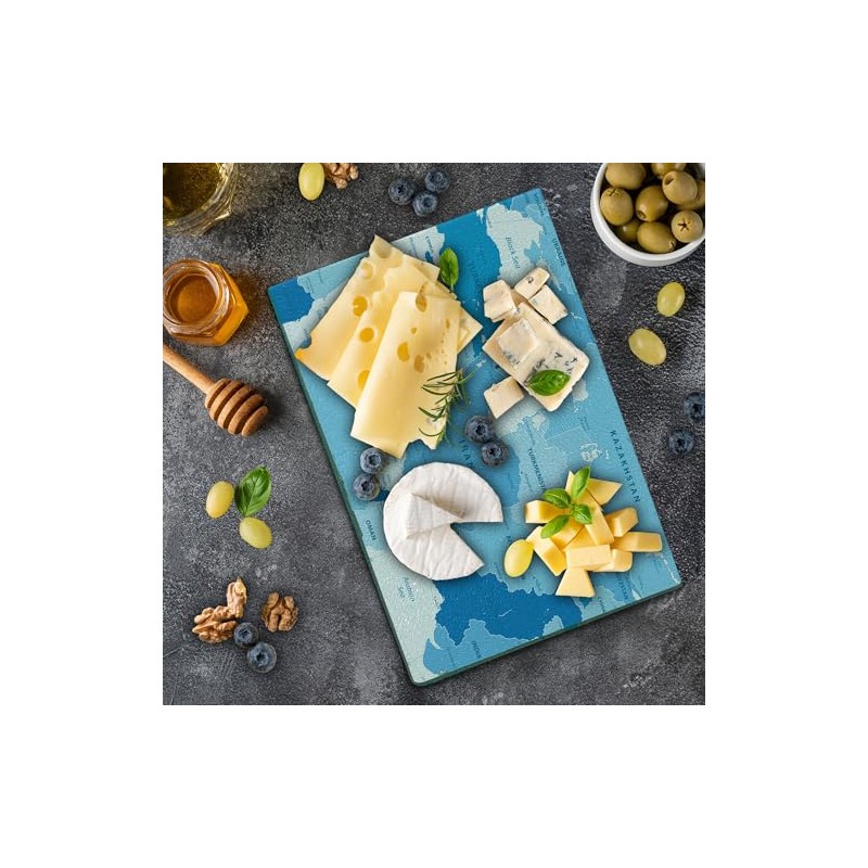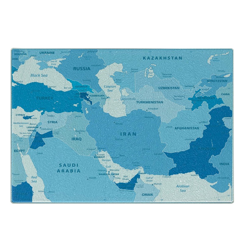 Lunarable Globe Cutting Board, Modern Cold Winter Tones Illustrated World Map with Countries Classic Atlas Print, Decorative Tempered Glass Cutting and Serving Board, Small Size, White and Blue