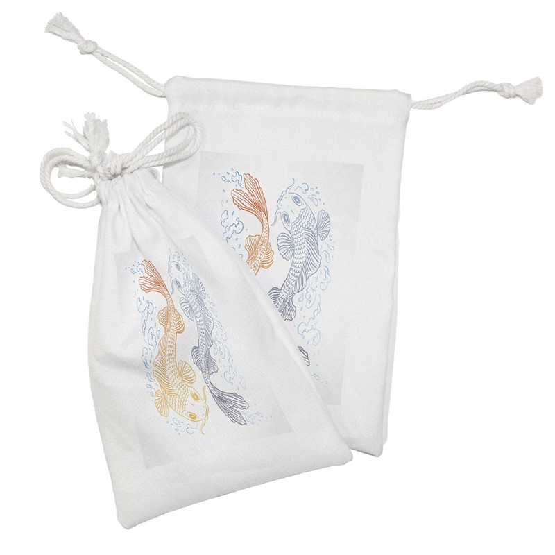 Lunarable Koi Fish Fabric Pouch Set of 2, Hand Drawn Sketch of Fishes Swimming Easterns, Small Drawstring Bag for Toiletries Masks and Favors, 9" x 6", Orange Grey Blue