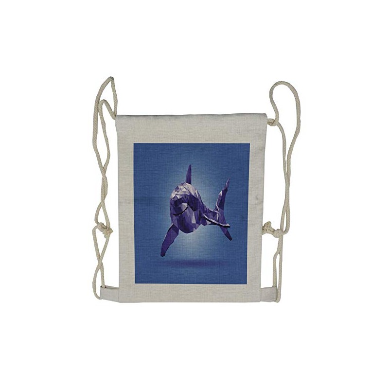 Lunarable Marine Drawstring Backpack, Fractal Polygonal Shark, Sackpack Bag