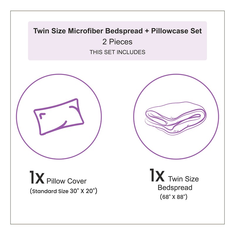 • 1 Twin size bedspread 68" x 88" + 1 pillow sham 30" X 20". Perfect accent to your bedroom.