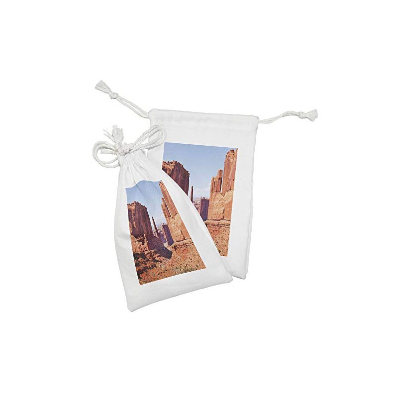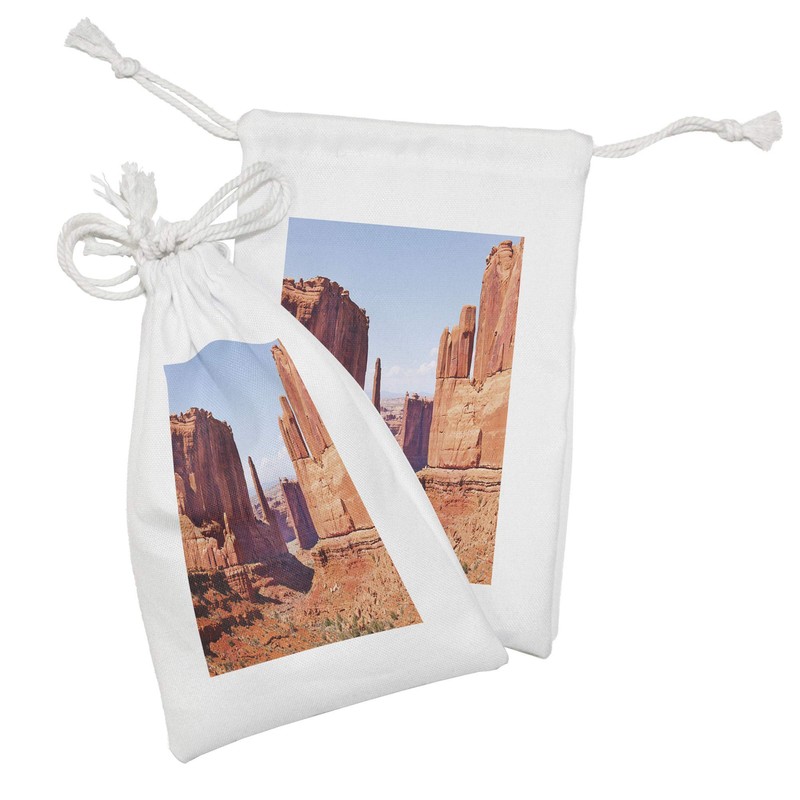 Lunarable National Parks Fabric Pouch Set of 2, Grand Canyon Rock Formations Redrocks Carved American Arizona Desert, Small Drawstring Bag for Toiletries Masks and Favors, 9" x 6", Orange Blue