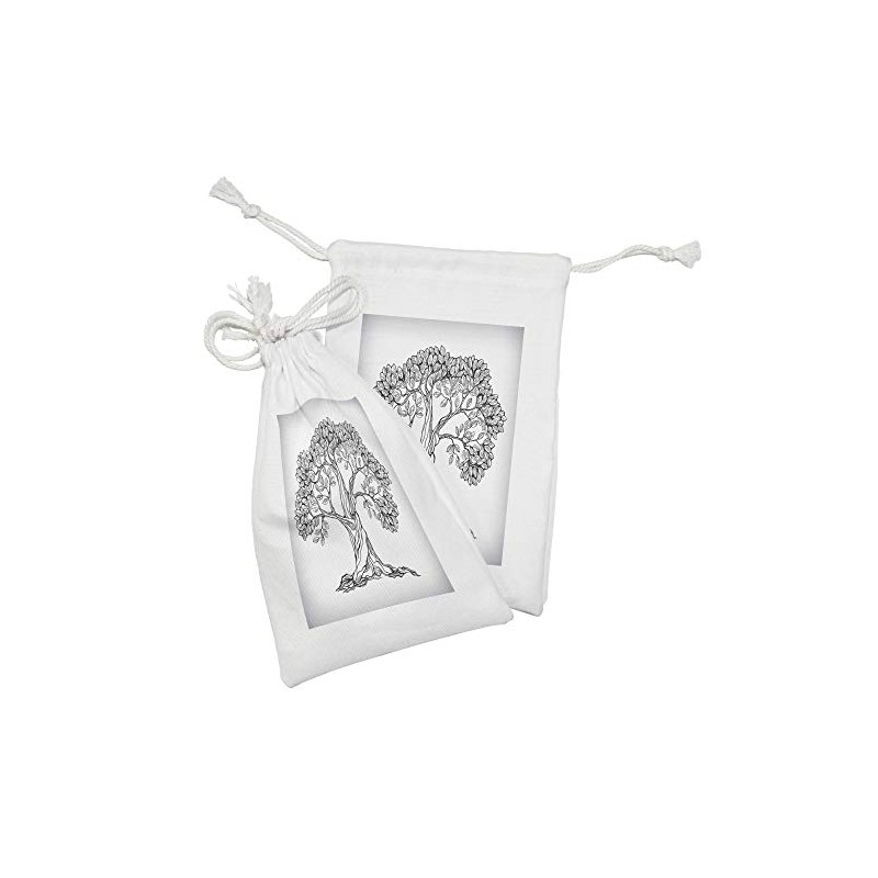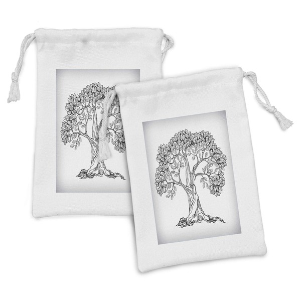Lunarable Nature Fabric Pouch Set of 2, Tree of Life Themed Majestic Hand Drawn Branches Harvest Mother Earth, Small Drawstring Bag for Toiletries Masks and Favors, 9" x 6", Pale Grey Charcoal Grey