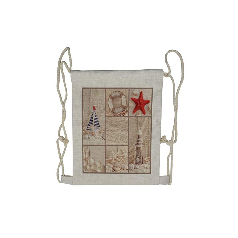 Lunarable Nautical Drawstring Backpack, Marine Sail Boat Collage, Sackpack Bag