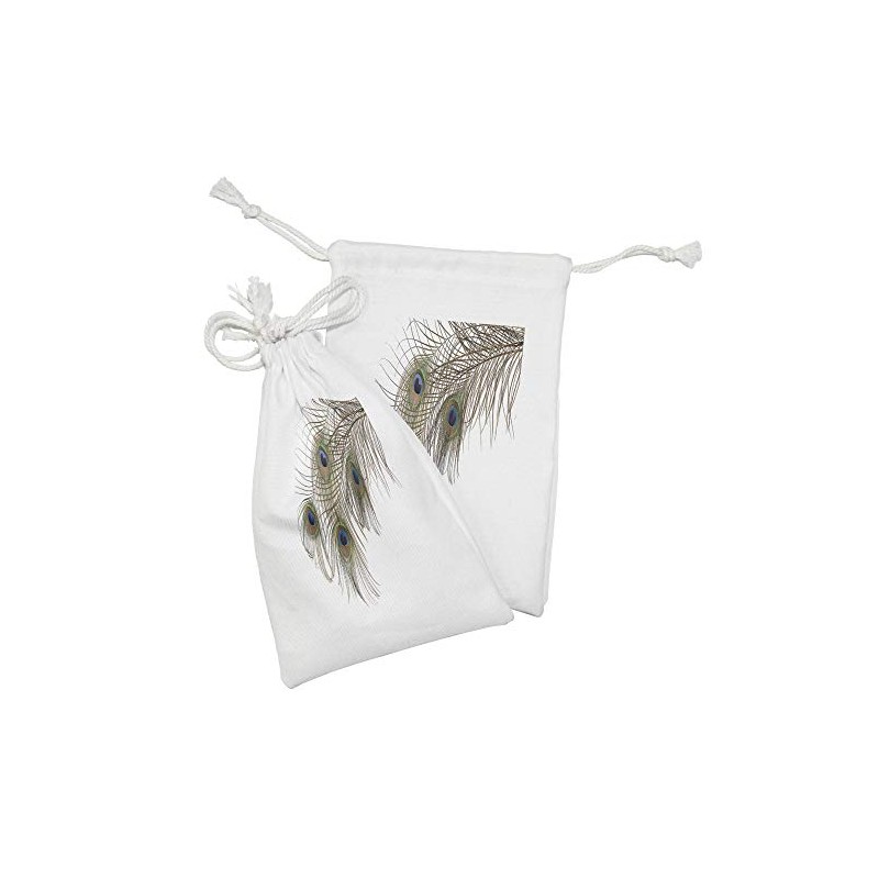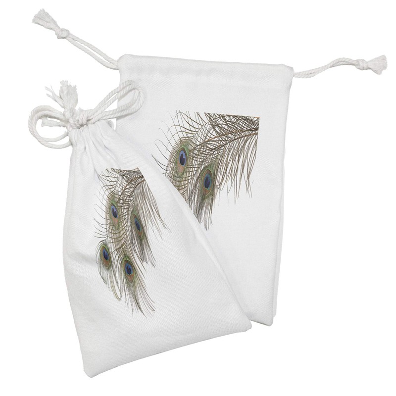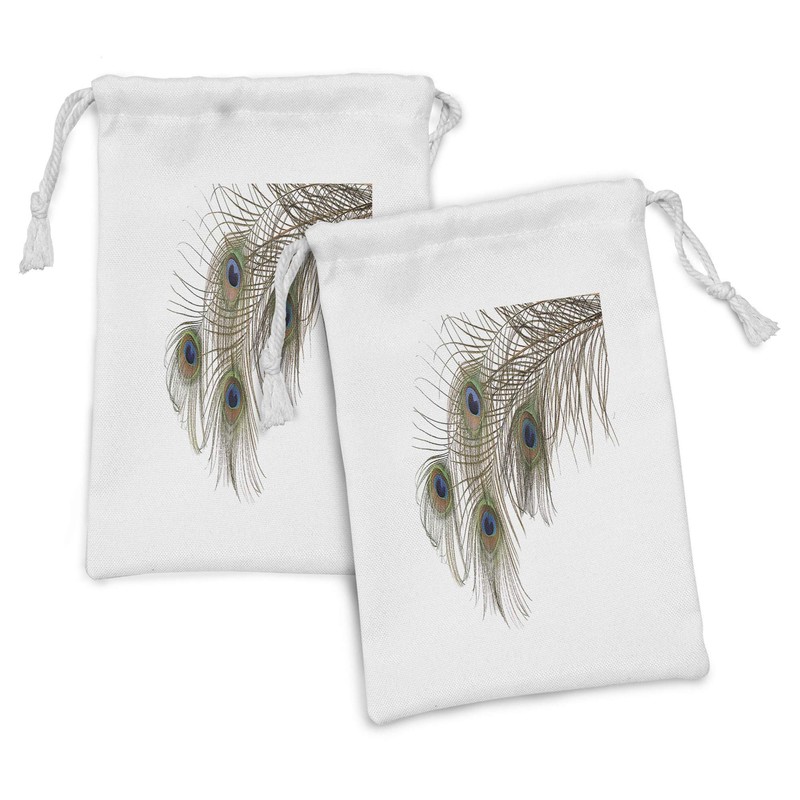 Lunarable Peacock Fabric Pouch Set of 2, Feather of Peacock Power Rising out of Theshes Creature, Small Drawstring Bag for Toiletries Masks and Favors, 9" x 6", White Green