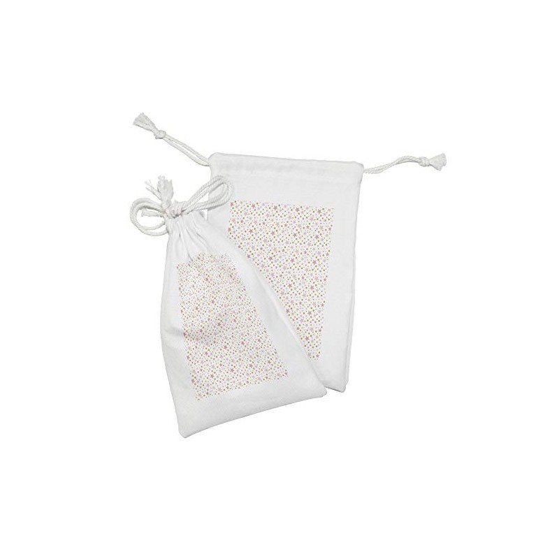 Lunarable Pink Polka Dots Fabric Pouch Set of 2, Repetitive Pastel Pattern Irregular Rounds and Stars Illustration, Small Drawstring Bag for Toiletries Masks and Favors, 9" x 6", Sand Brown Pale Pink