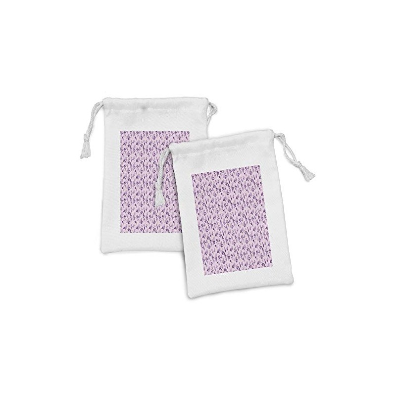 Lunarable Purple Floral Fabric Pouch Set of 2, Continuous and Romantic Illustration of Rustic Rose Silhouettes, Small Drawstring Bag for Toiletries Masks and Favors, 9" x 6", Pale Pink Violet