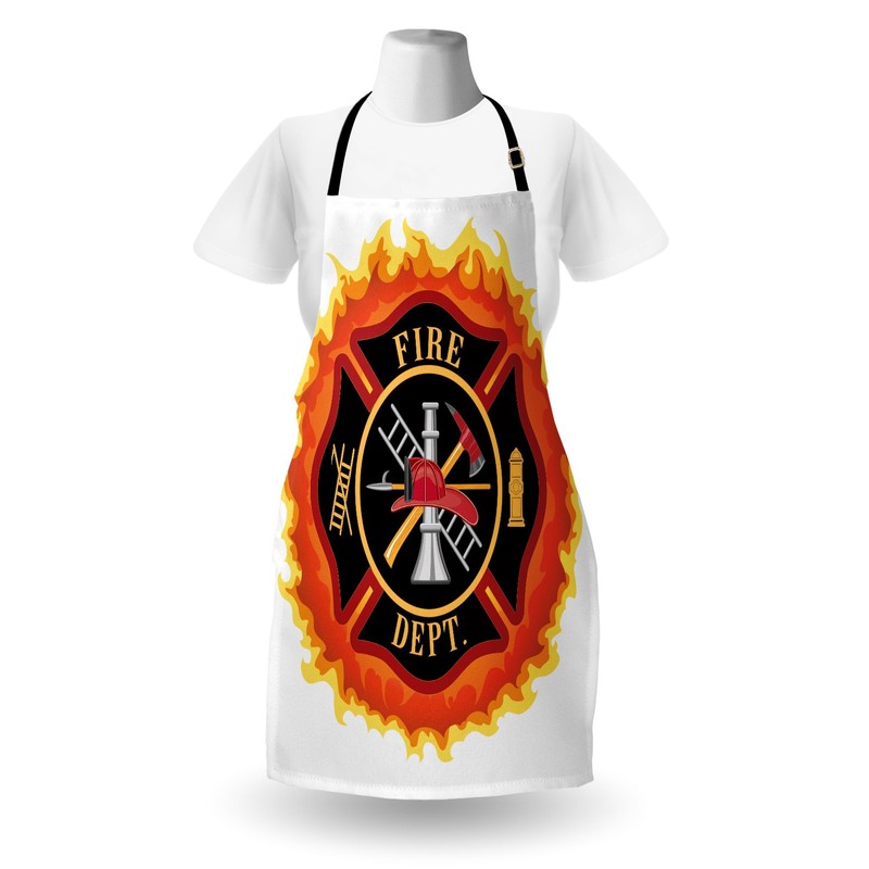 Lunarable Service Apron, Department Ladder Public Service Essential Tools Extinguish Illustration, Unisex Kitchen Bib with Adjustable Neck for Cooking Gardening, Adult Size, Soft Orange
