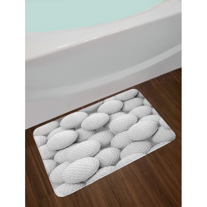 Lunarable Sports Bath Mat, Pile of Realistic Golf Balls Together Closeup Picture Challenge Entertainment Joyful, Plush Bathroom Decor Mat with Non Slip Backing, 29.5" X 17.5", Grey White