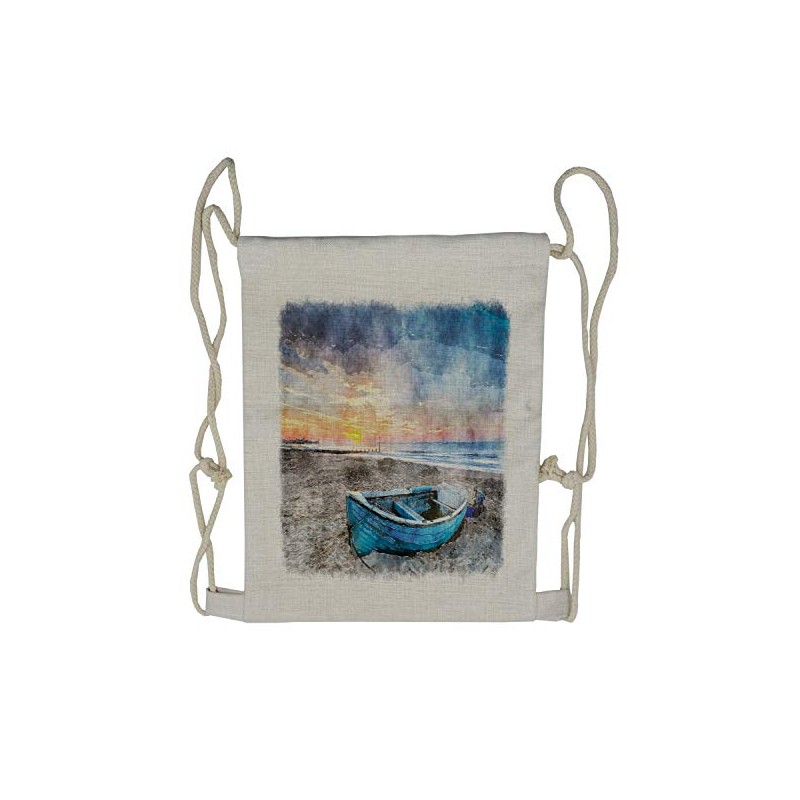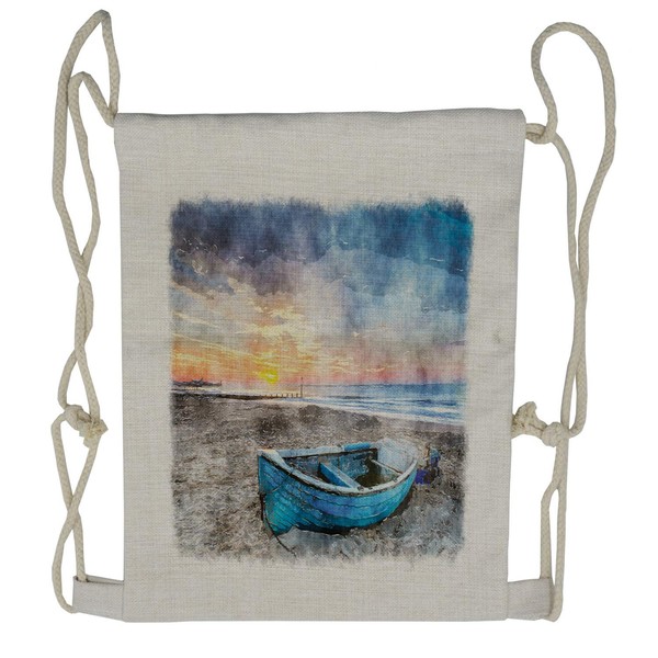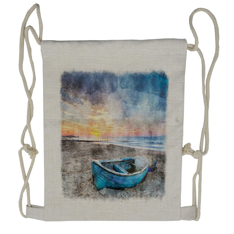 Lunarable Sunrise Drawstring Backpack, Fishing Boat on the Beach, Sackpack Bag