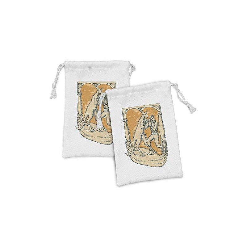 Lunarable Tropical Fabric Pouch Set of 2, Kangaroo Jumps Against Disappearanc...