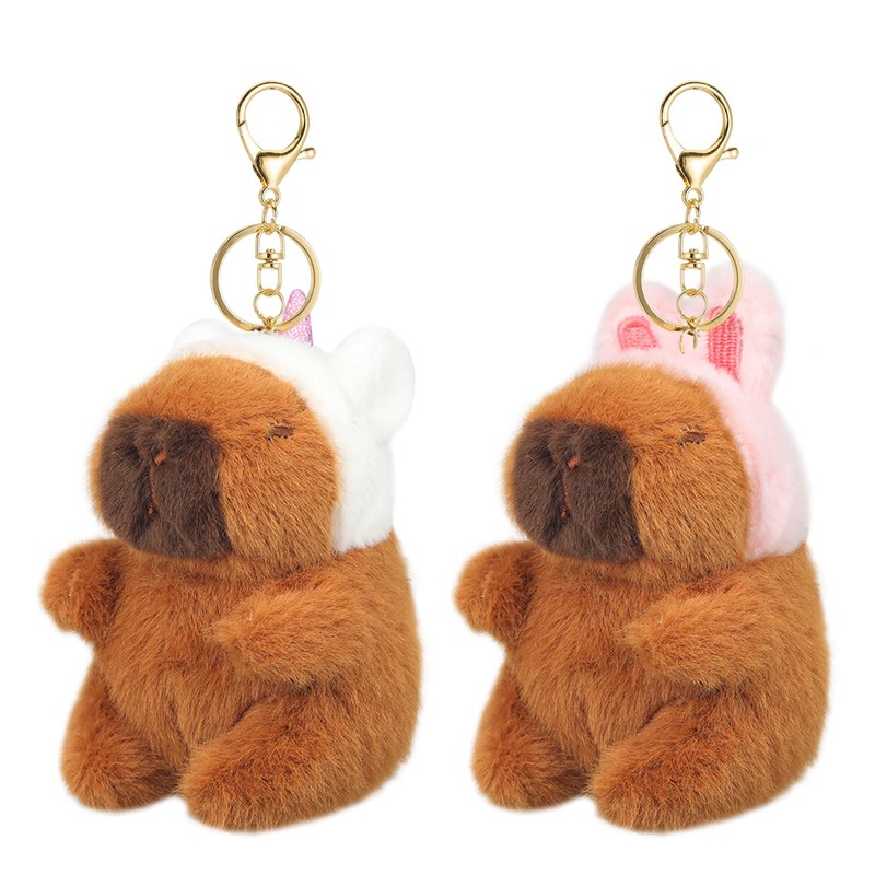 LunarCharm 2 pieces cute capybara keyring, plush toy, capybara cuddly toy, capybara pendant for rucksack, birthday present, bunny ears cap
