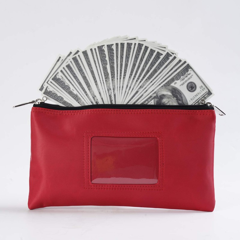 Lunasmile Lockable Bank Deposit Bag with Upgraded Zipper, Multi-Purpose Storage Zipper Pouch (Red)