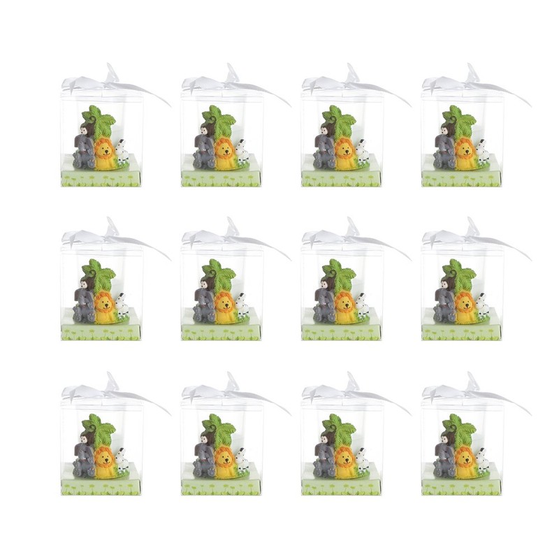 Lunaura Party Keepsake - Set of 12 Safari Jungle Animals Candle Set Favors for Birthday Parties, Special Celebrations, Toys, Elephant, Girls & Boys | Encased in A Clear Gift Box with Satin Ribbon