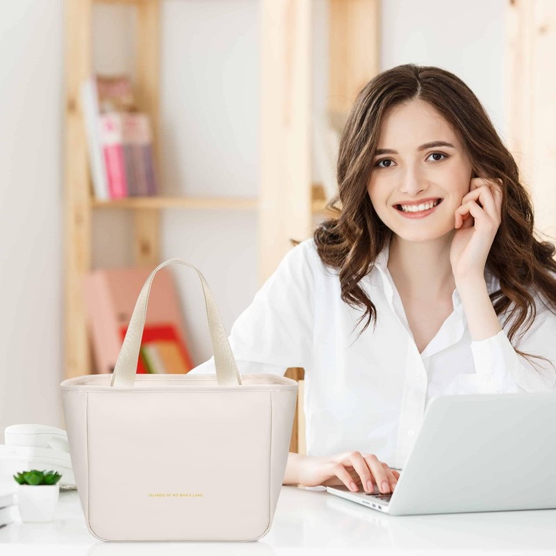 - 2.Insulated Lunch Bag: The fashionable and simple women's lunch bag, the combination of solid color appearance, hot stamping text and metal label makes the lunch bag a fashionable combination for women's travel. The cloud lunch wallet with pocket is exquisite and weighs only 1 pound (about 0.2 kg); ), making meal transportation more convenient.