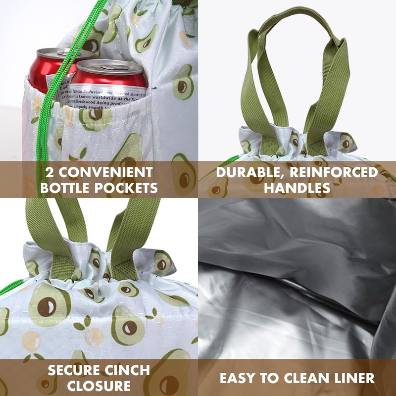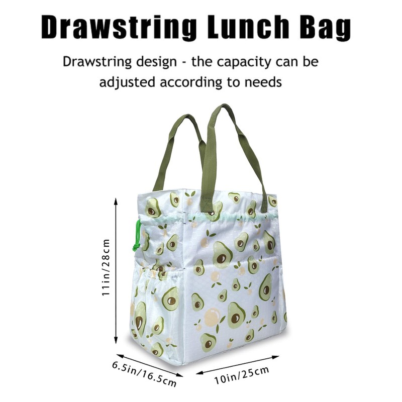 - Drawstring Lunch Bag - Our adult lunch box comes with two straps, two bottle pockets and a buckle, which is convenient and stylish. The surface is made of waterproof special fabric, which is not easy to penetrate water.