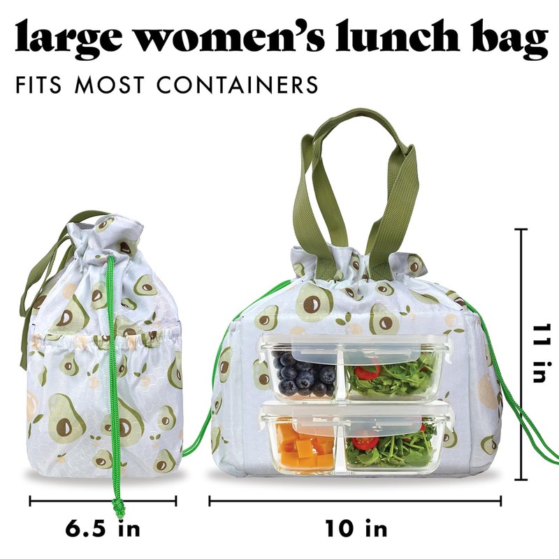 - Spacious Women's Lunch Box - Measuring 10 inches long x 11 inches high x 6.5 inches wide, our durable stain-resistant large lunch bag has a spacious interior to accommodate multiple containers. Easy to clean, the wide top opening allows you to easily take meals and snacks.
