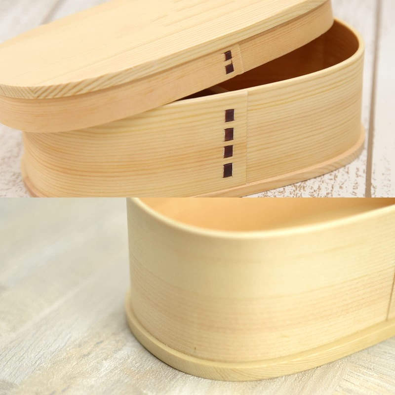 Bento box that breathes when bending wata. It wicks away excess moisture from your bento to and keeps the necessary moisture to keep your rice plump and mushy. 1. During the rainy season, the rice won't become stiff in the winter during the rainy season and summer 2. The rices are luxurious, making the cedar flavor and food even more delicious. Each piece is handmade by our artisans with love In general, we shave cedar and cypress lightly and dip it in boiling water, and then bend it gradually to emphasize craftsmanship. As our wooden products are made of natural materials, there may be differences in texture between the actual product and the photos. The wood grain (wood only), weight and color of the same product may vary. Please refrain from returning for such reasons. Size (approx.): 7.1 x 3.9 x 2.4 inches (18 x 10 x 6 cm); Inner dimensions (approx.): 6.2 x 3.1 x 1.9 inches (15.8 x 8 x 4.8 cm); Capacity (approx.): 20.5 fl oz (570 cc);